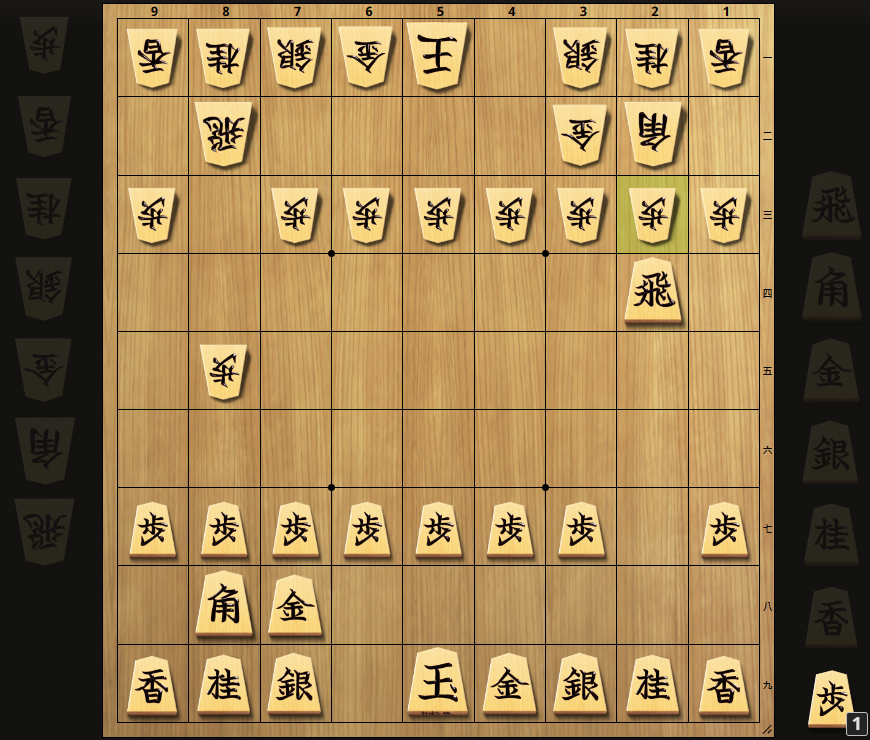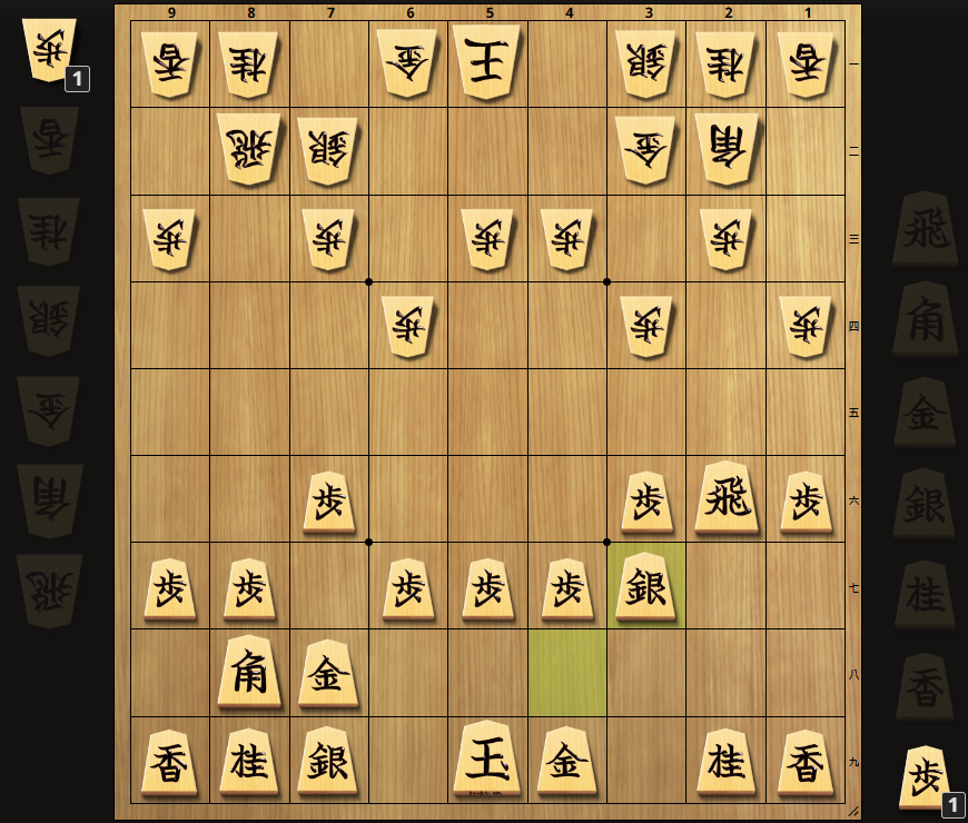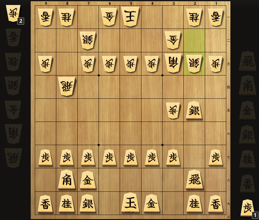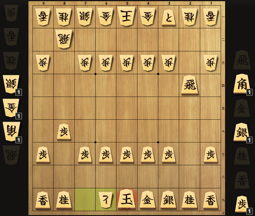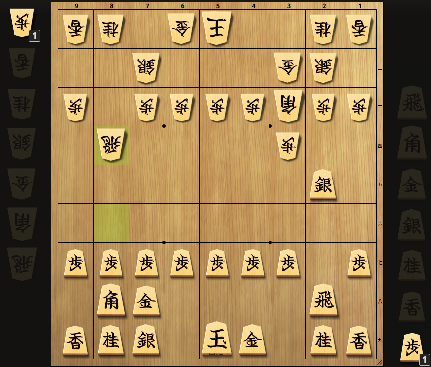 不過這邊後手有防禦的方式:先交換飛前步再把飛車退到8四位置,
