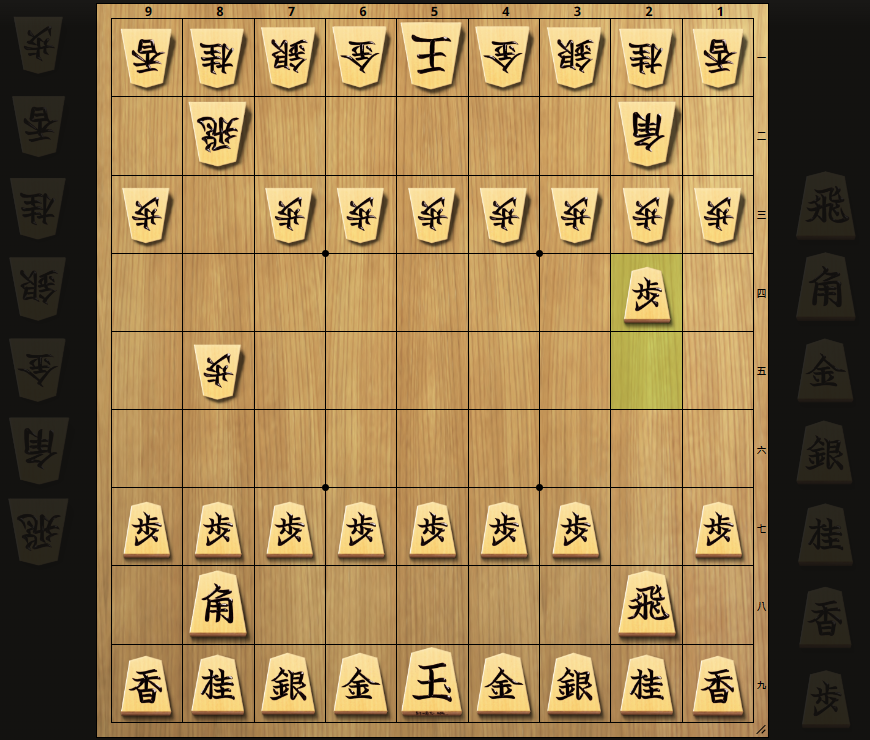 我們從初手開始:☗2六步 ☖8四步 ☗2五步 ☖8五步(圖1)